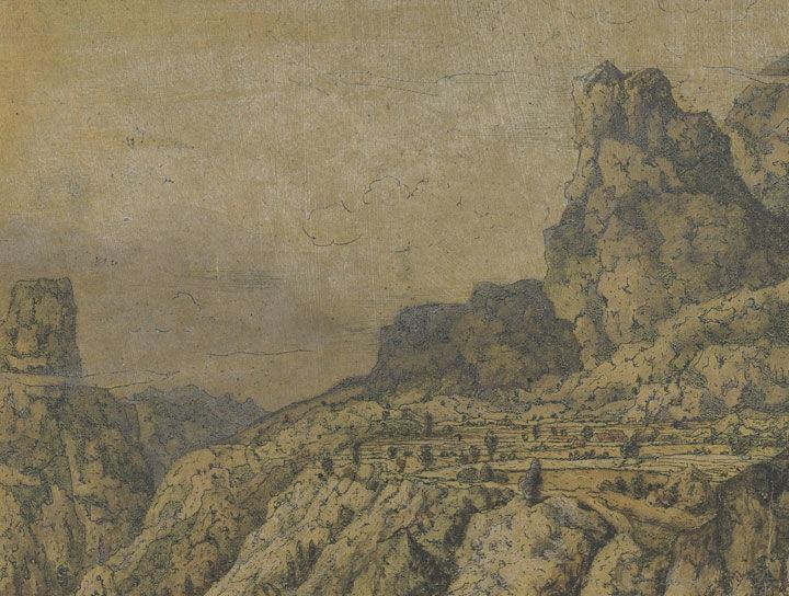 Although Segers made a specialty of landscapes, he did not base most of his work on what he saw in nature. In fact, he never seems to have seen first-hand the large, rocky mountains he so often depicted, and he knew of the Alpine valleys only from landscapes prints made after designs by Pieter Bruegel the Elder.