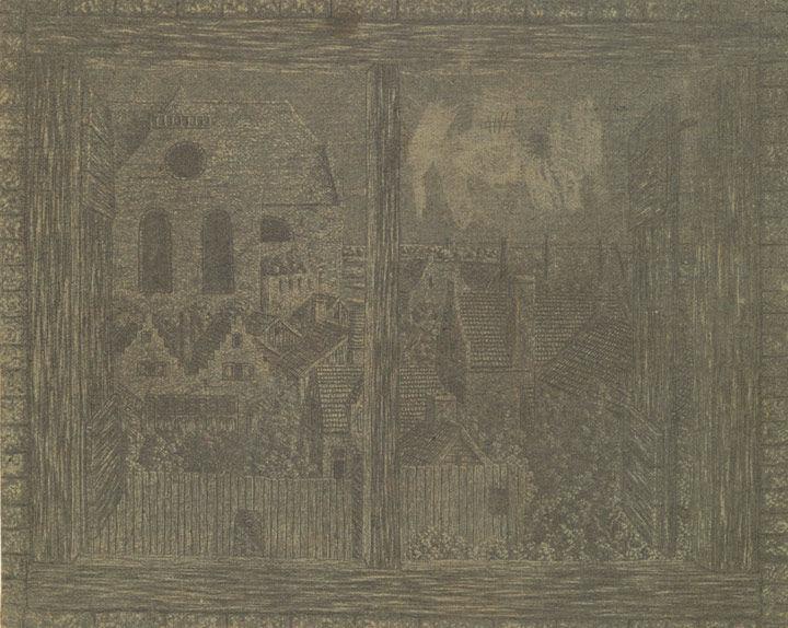 Hercules Segers (Dutch, ca. 1590–ca. 1638). View through the Window of Segers's House toward the Noorderkerk, ca. 1625–30. Line etching; unique impression printed in black, Sheet: 5 9/16 x 6 15/16 in. (14.1 x 17.7 cm). Rijksmuseum, Amsterdam; on loan from the City of Amsterdam, collection Michiel Hinloopen (1619–1708), 1885 (inv. no. RP-P-H-OB-857)