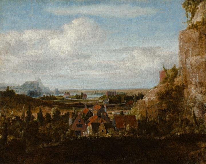 In Houses near Steep Cliffs, Segers repeated more or less the same group of houses, but here he set them within a rocky landscape more typical of the lower Alps than anywhere in Holland, let alone in the bustling city of Amsterdam.