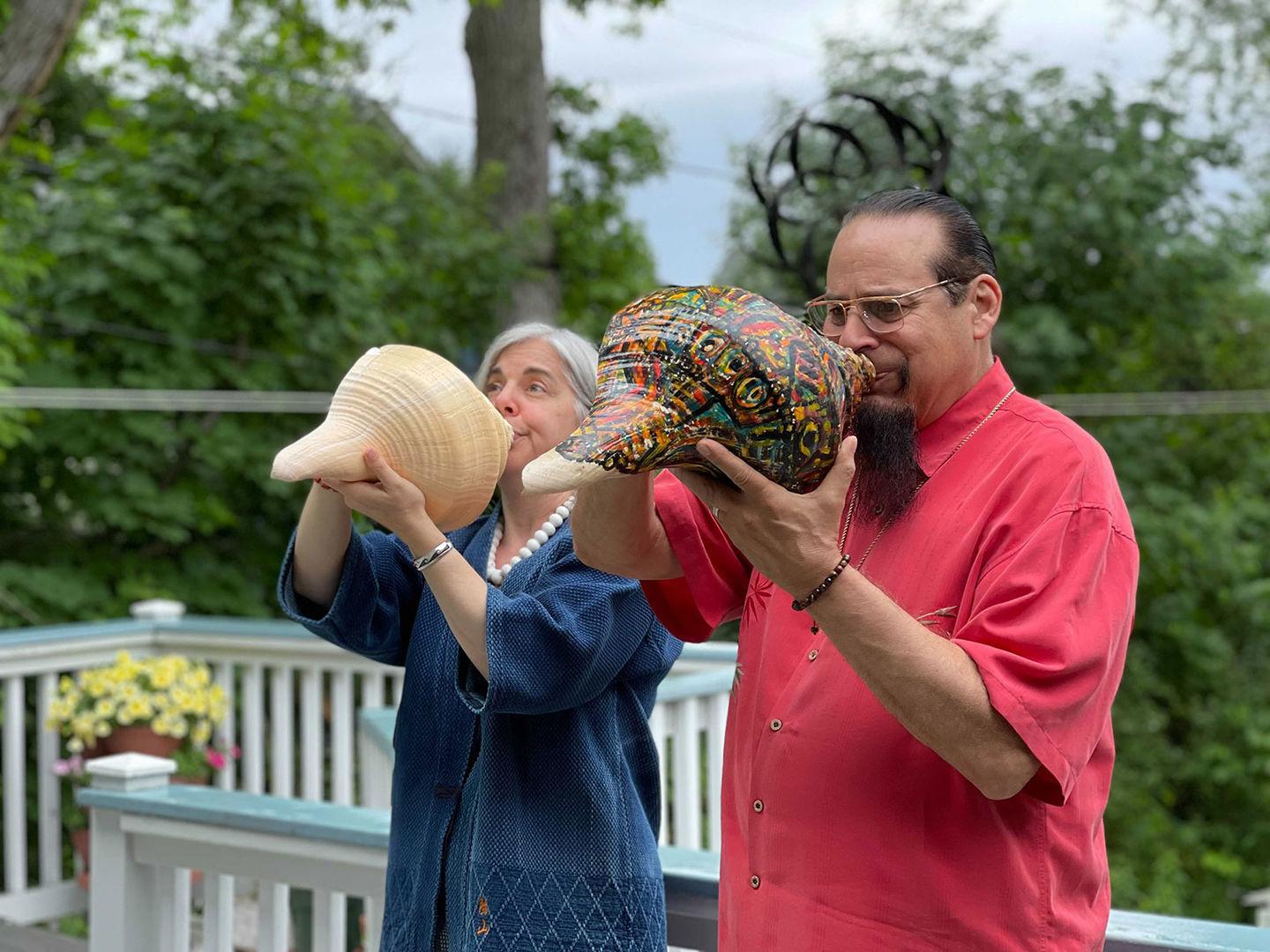 Strauchen-Scherer and Turre playing two syrinx aruanus at Turre’s home in New Jersey