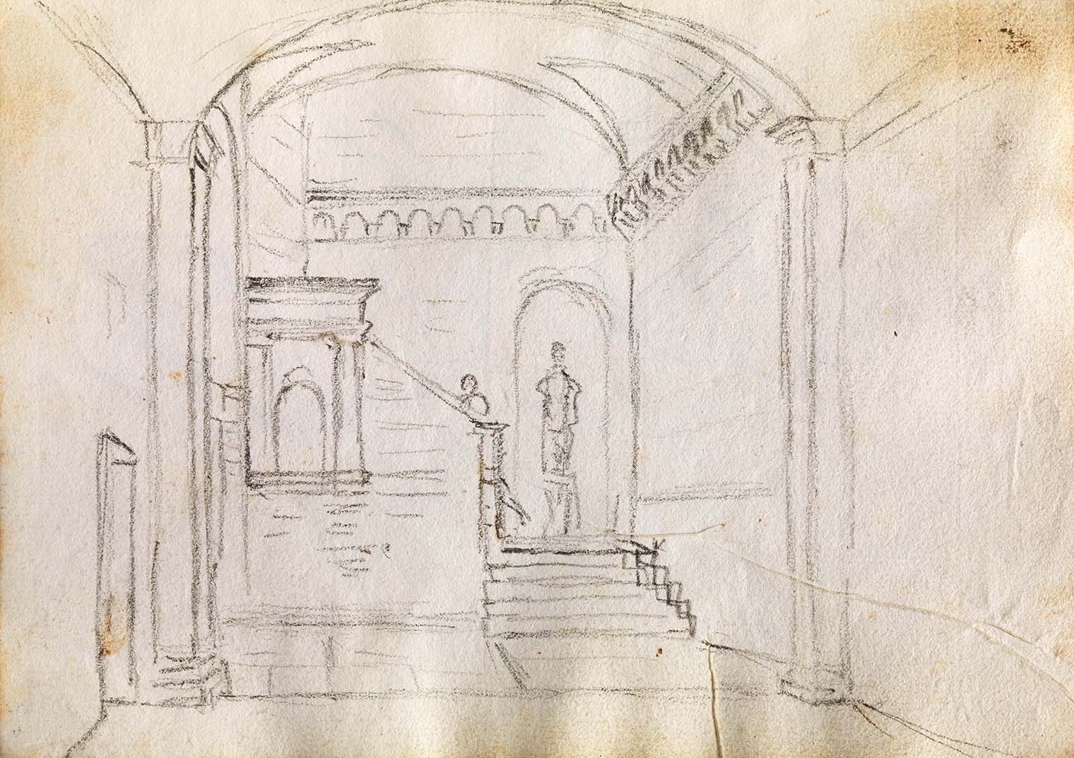 For one, he pierced the solid wall with a vaulted hallway leading to a set of stairs based, perhaps, on a building he had sketched years earlier in Italy.