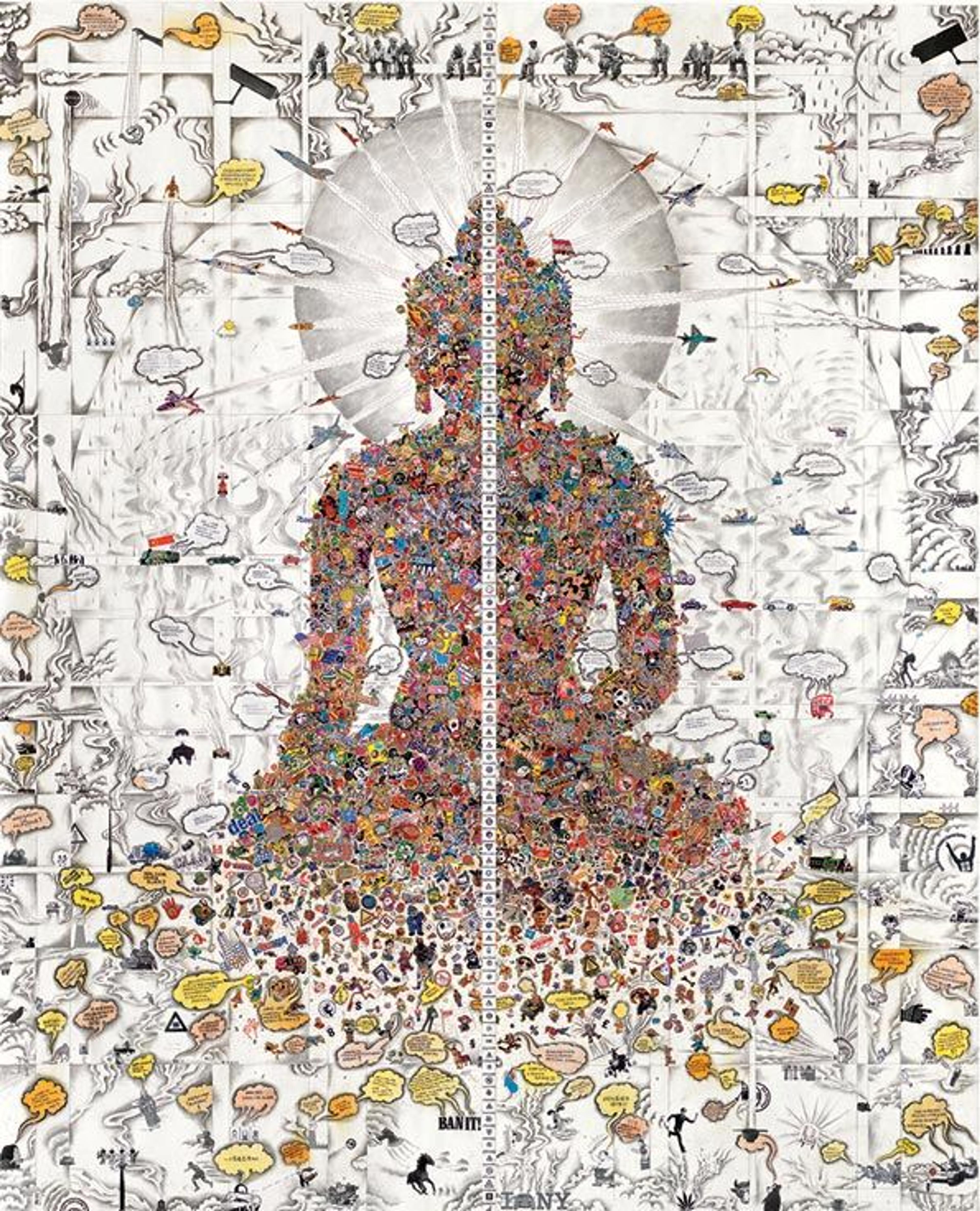 Gonkar Gyatso (born Lhasa 1961). Dissected Buddha, 2011. Collage, stickers, pencil and colored pencil, and acrylic on paper; 9 ft. 2 1/4 in. x 90 1/2 in. (280 x 229.9 cm). Promised Gift of Margaret Scott and David Teplitzky. © Gonkar Gyatso