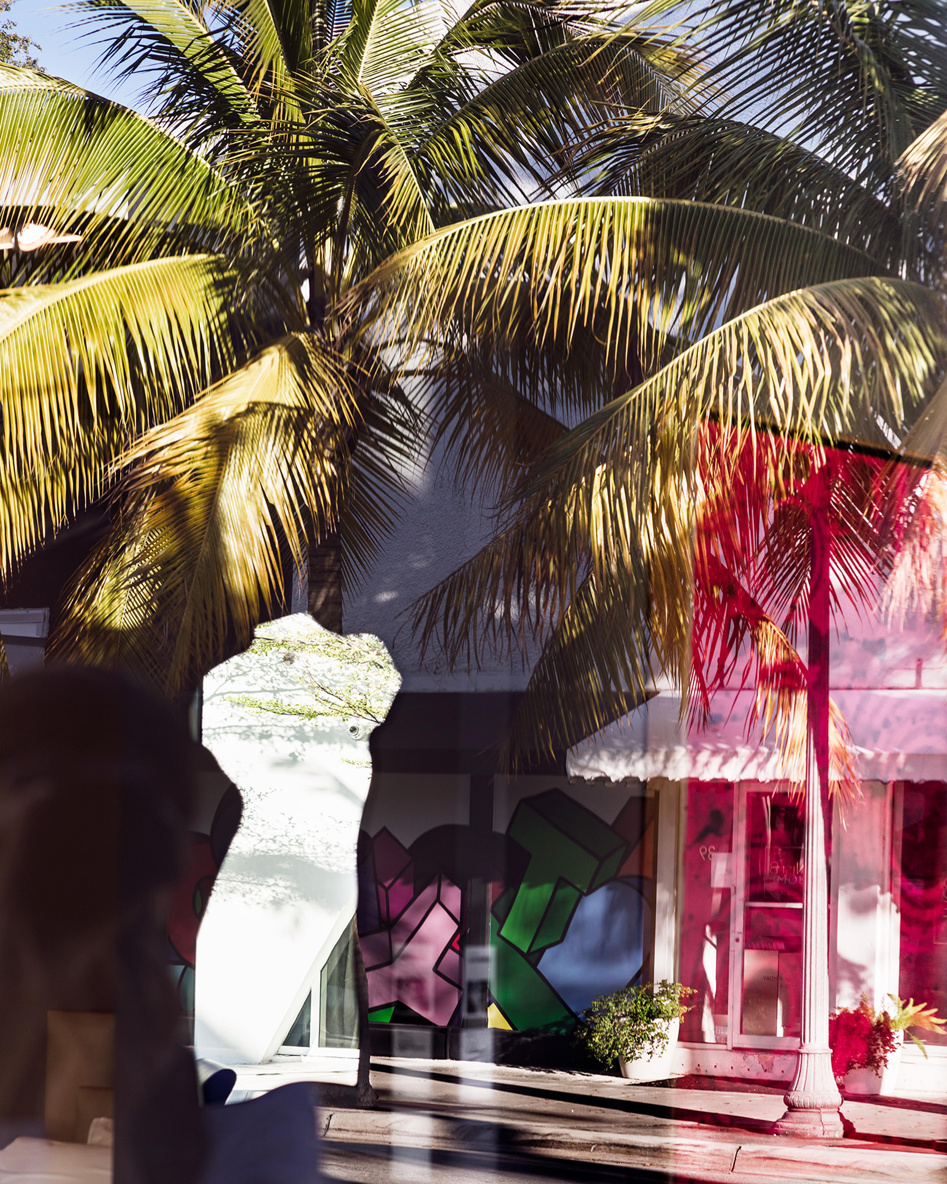 Anastasia Samoylova’s images capture the trompe l’oeil of Florida, many to do with water and glass—the mise-en-abyme of cypress trunks reflected in a tannic creek, the indoor pool of a flooded ground floor, the inverted rubric of a passing flamingo in a pond. Venus Mirror, Miami (2020)—a definitive statement of Floridian aesthetics—was photographed through the highly reflective plate glass of a shop window. It flattens a three-dimensional space into a collage of palm frond and pilaster, mannequin and mural, awning and wave, inside and outside, reflection and shadow.