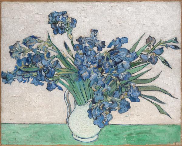 «Vincent van Gogh is known to have struggled with his mental health. He spent time at an asylum in Saint-Rémy in the south of France, and during his time there, he worked to understand how certain colors could be expressed in relation to each other by painting flowers. Just before he left the asylum, he painted a series of irises and roses—two paintings of each in different formats and colors—which were featured in the recently closed exhibition Van Gogh: Irises and Roses.»