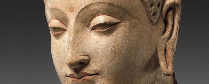 Head of Buddha (detail), 5th–6th century. Afghanistan (probably Hadda). Stucco with traces of paint, H. 7 1/4 in. (18.4 cm). The Metropolitan Museum of Art, New York, Rogers Fund, 1930 (30.32.5)