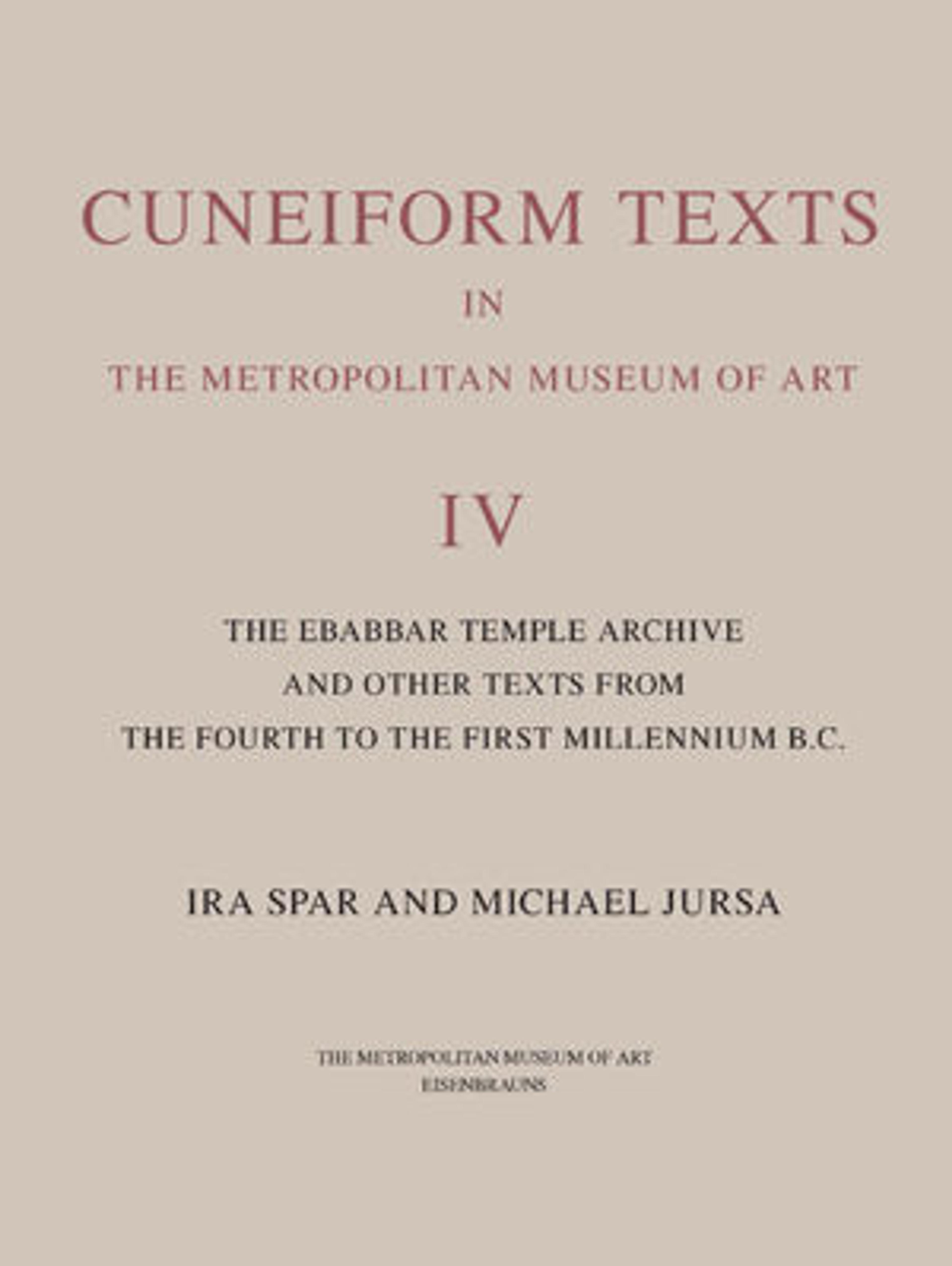 The last in a four-volume series, this volume covers administrative tablets and archives from the Ebbar Temple archive and various sites in Neo- and Late Babylonia, as well as brick, stone, bulla, cylinder, and prism inscriptions from the second and first millennia B.C. and proto-cuneiform texts.