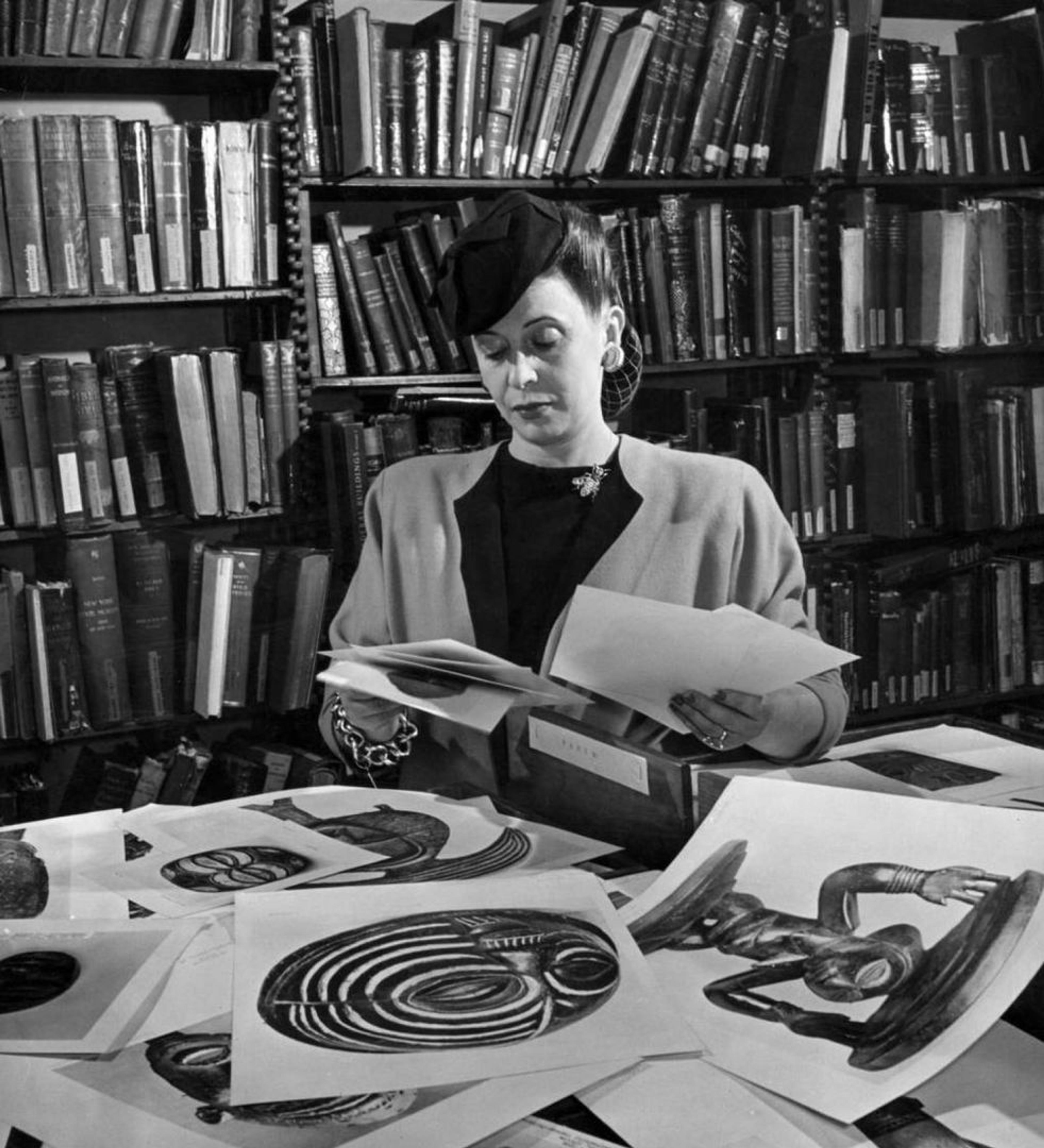 Lilly Daché doing research in the picture collection of the New York Public Library, April 1944. Photograph by Alfred Eisenstaedt