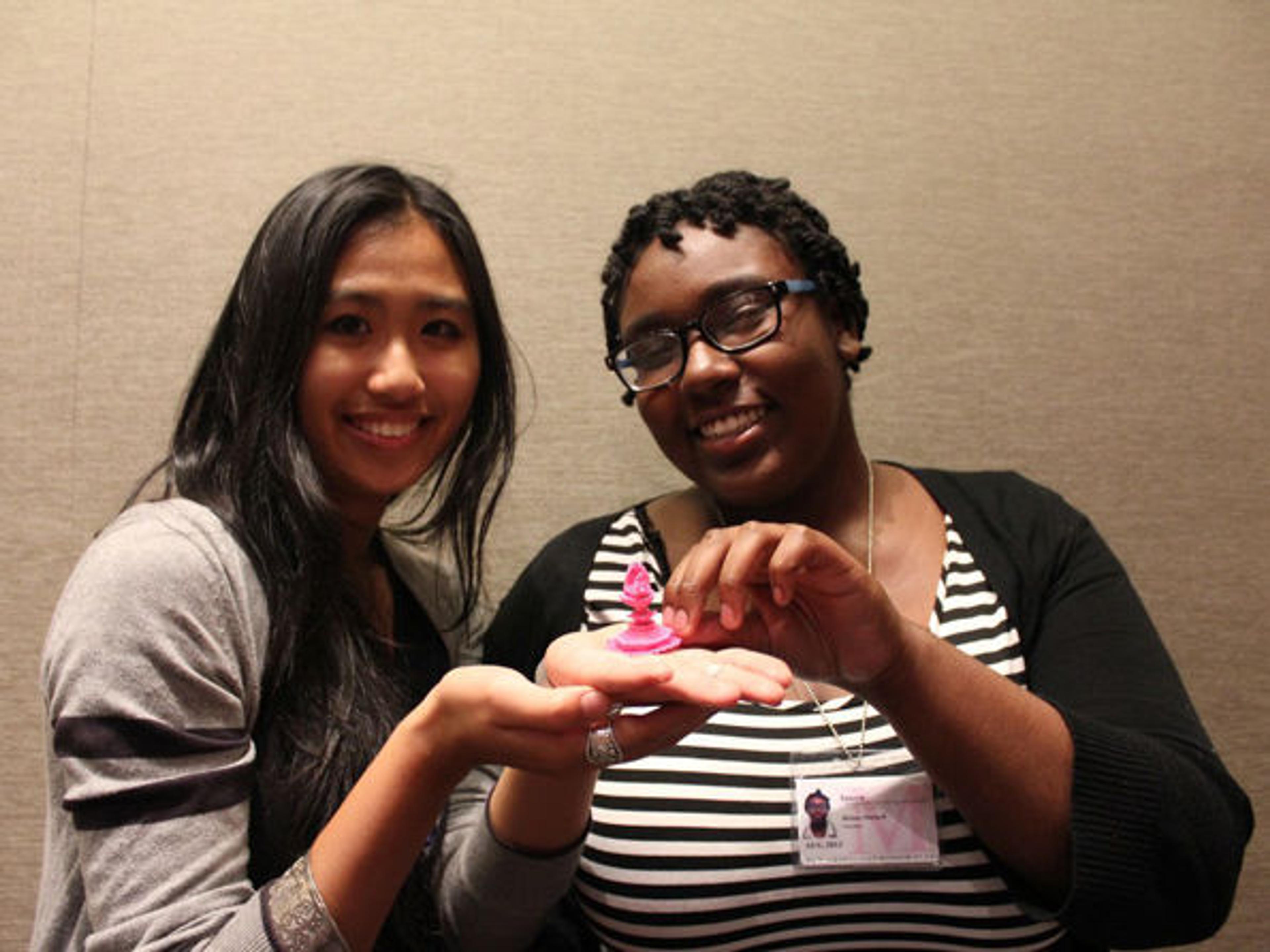Angeles and Briana with their 3D sculpture, Monster in a Monster