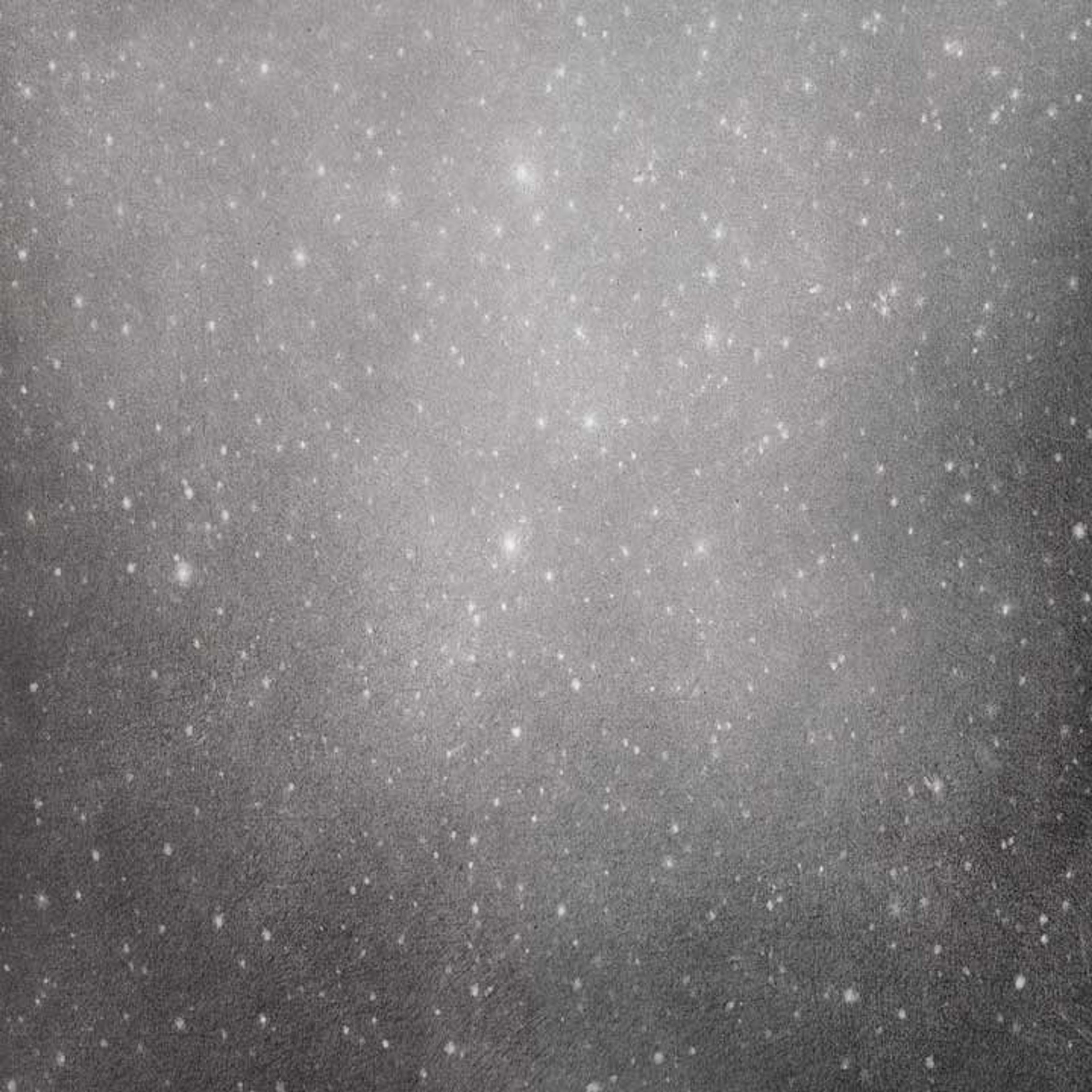 The Latvian American artist Vija Celmins draws inspiration from the natural world: spiderwebs, craterous deserts, the sea, the surface of the moon. In the nineties, she began a series of paintings and photogravures based on photographs of the night sky. Layering solid charcoal onto wrought plates, she uses erasers to map the stars, hazy lights against a worn black. She later imprinted the same pattern on a waxen field, inverting the pattern on a parchment-hued background. Reversed, the night sky resembles a plane of imperial white granite.