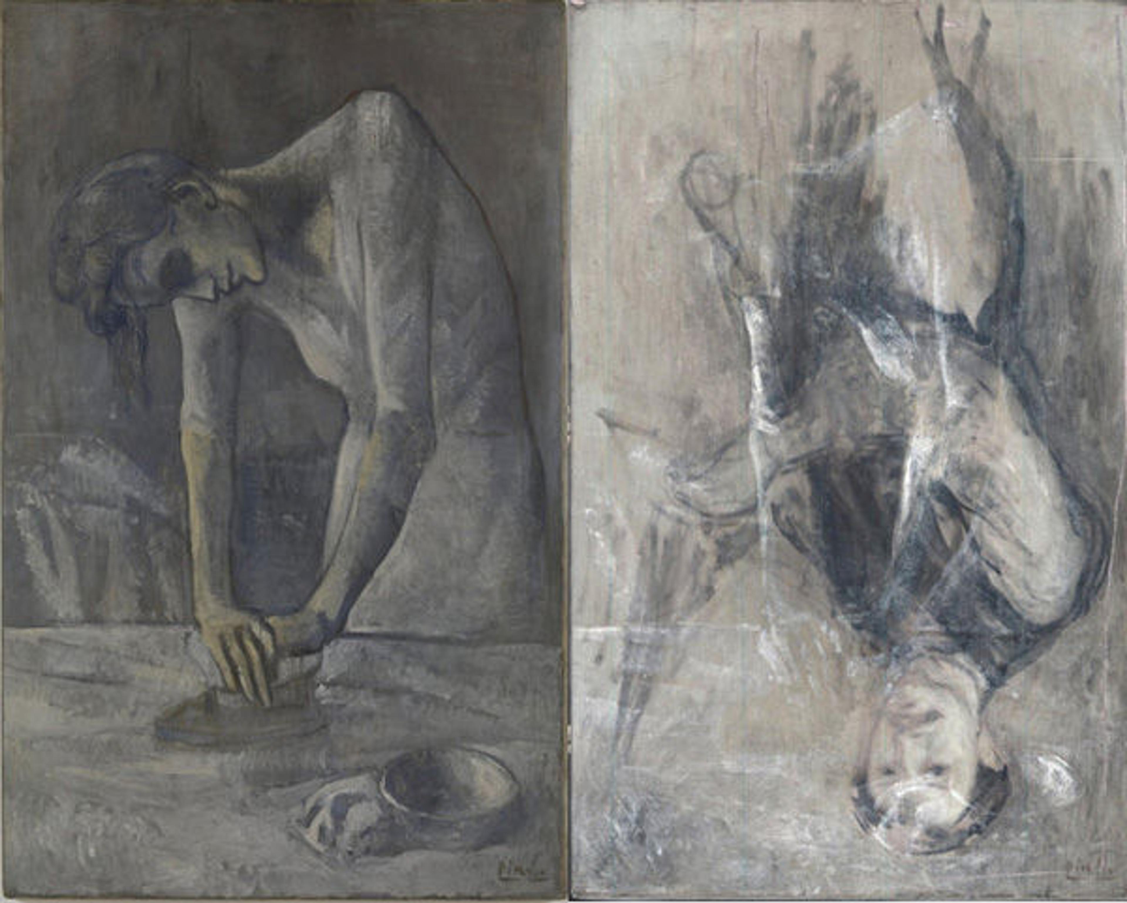 Pablo Picasso is known to have often painted over his paintings. Here, one can see Woman Ironing (1904) (left) and the portrait of a man found underneath (right). Read more in the New York Times. Image courtesy of New York Times