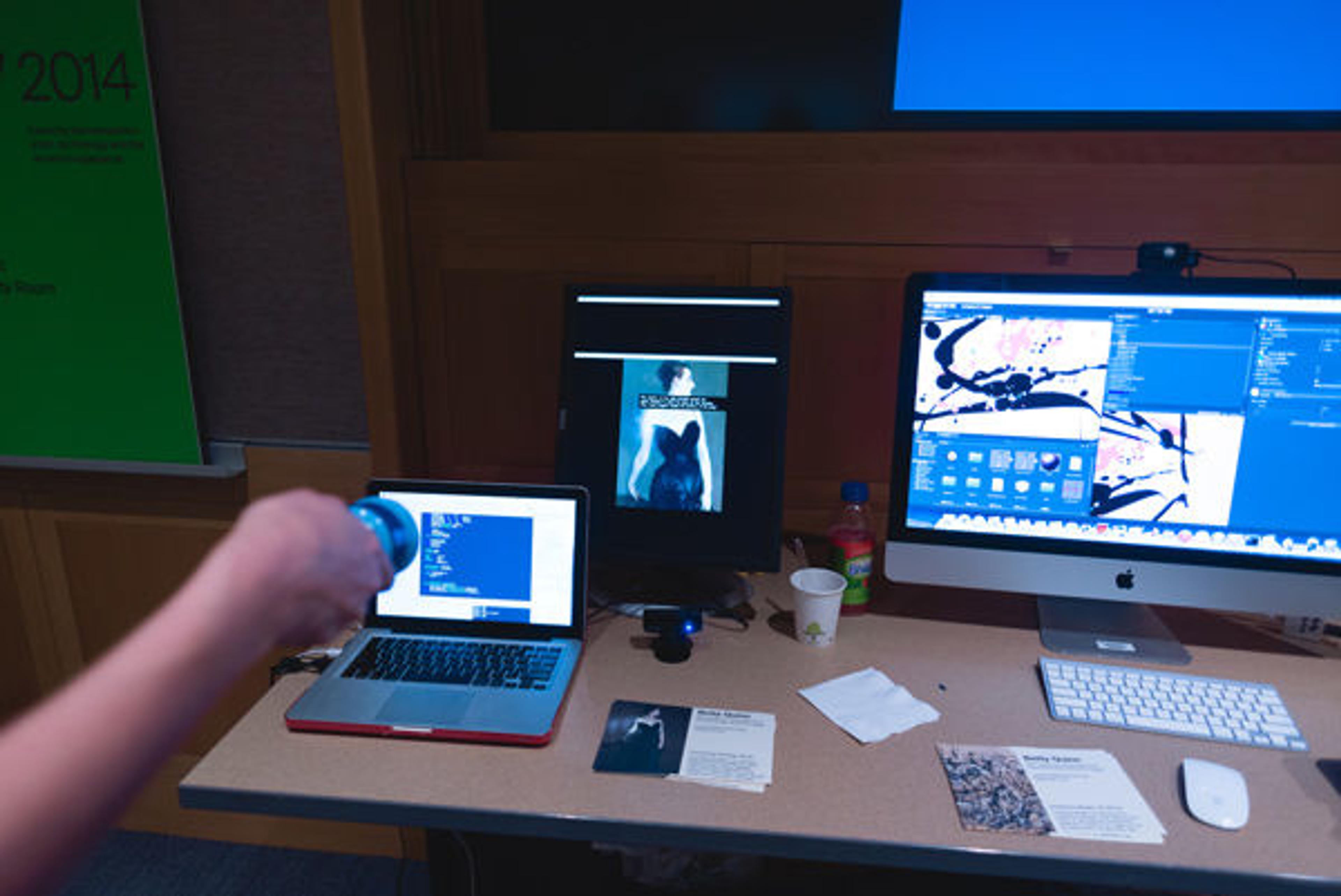 Paintings Uncovered setup for the fall 2014 MediaLab Expo. Image courtesy of the author