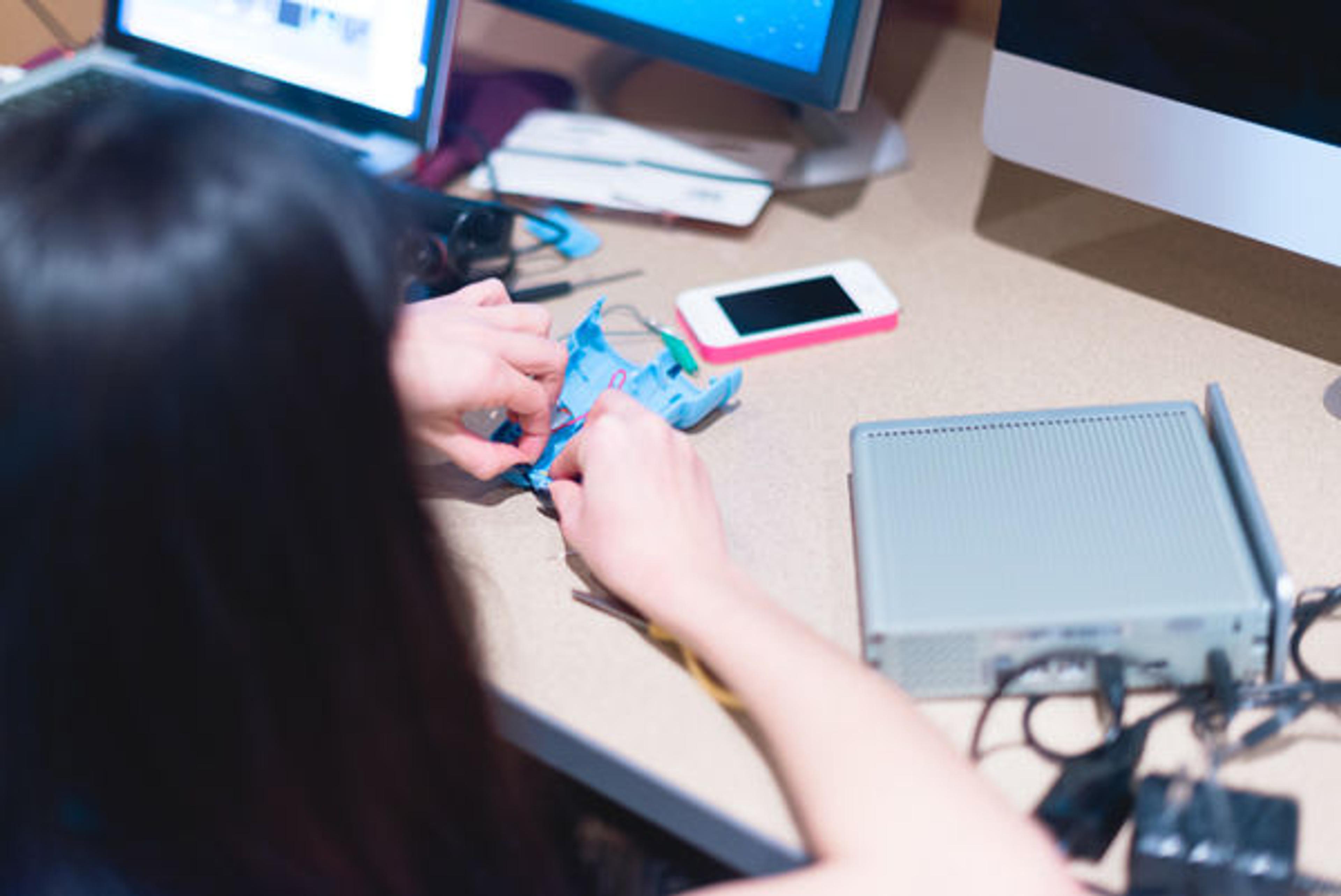 The author putting together the infrared flashlight. Photograph by Yuliya Levit