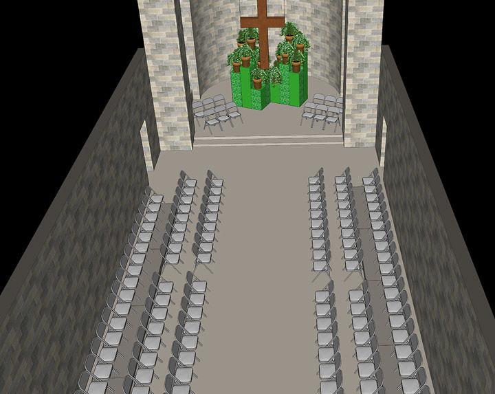 Rendering of Paradise for The Play of Adam, in the apse of the Fuentidueña Chapel at The Met Cloisters. Set design by Stephen Dobay