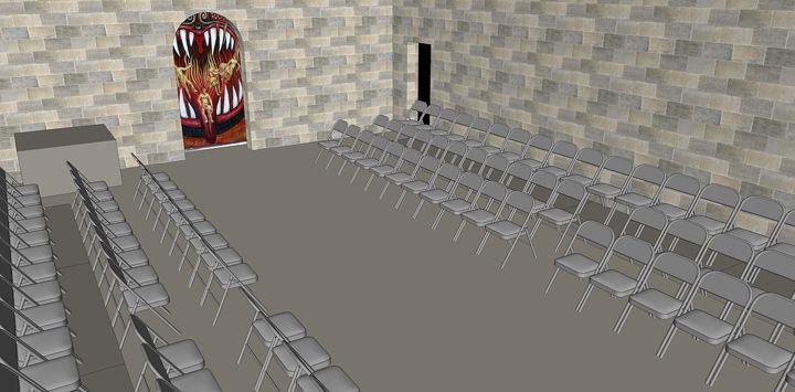 Rendering of the Hellmouth for The Play of Adam at The Met Cloisters. Hellmouth painting by Helen McCarthy; set design by Stephen Dobay