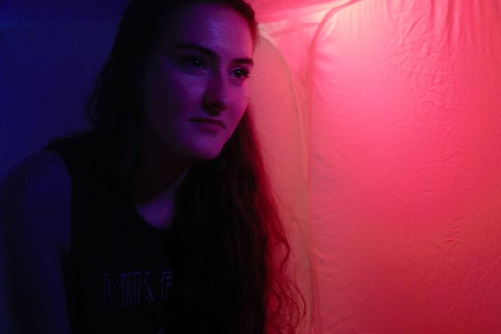 Colors expresses an in-between emotion in the use of both warm and cool colors combined with the subject's neutral expression. I created it by experimenting with gel filters to alter the lighting in the studio.