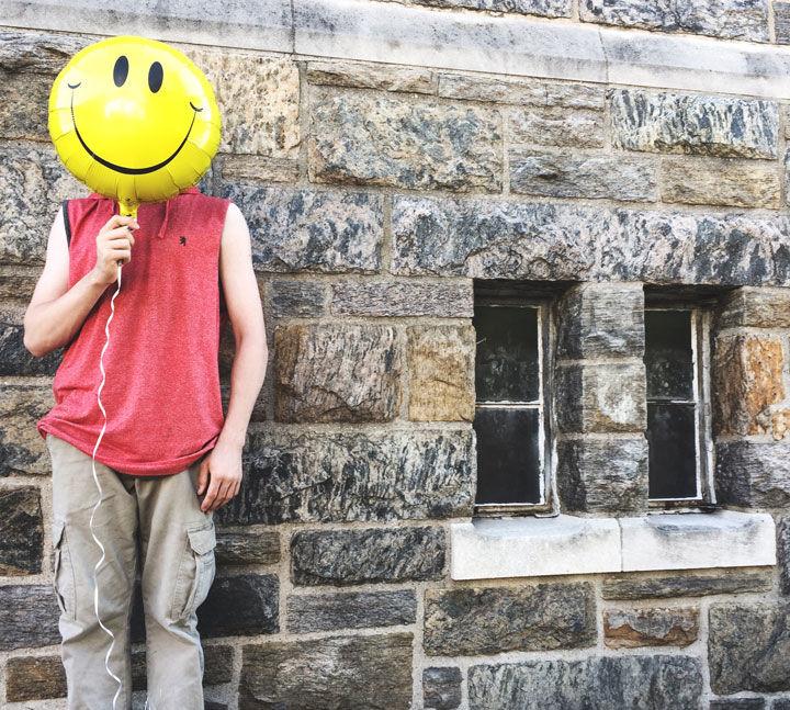 In Shoulders Aren't Just for Crying On, shown above, you can see my brother holding a smiley face balloon over his face, which depicts him as I normally see him: happy and smiley. But the giant yellow balloon exaggerates this emotion and obscures the identity of the subject. This exaggerated expression captures my perception of him.