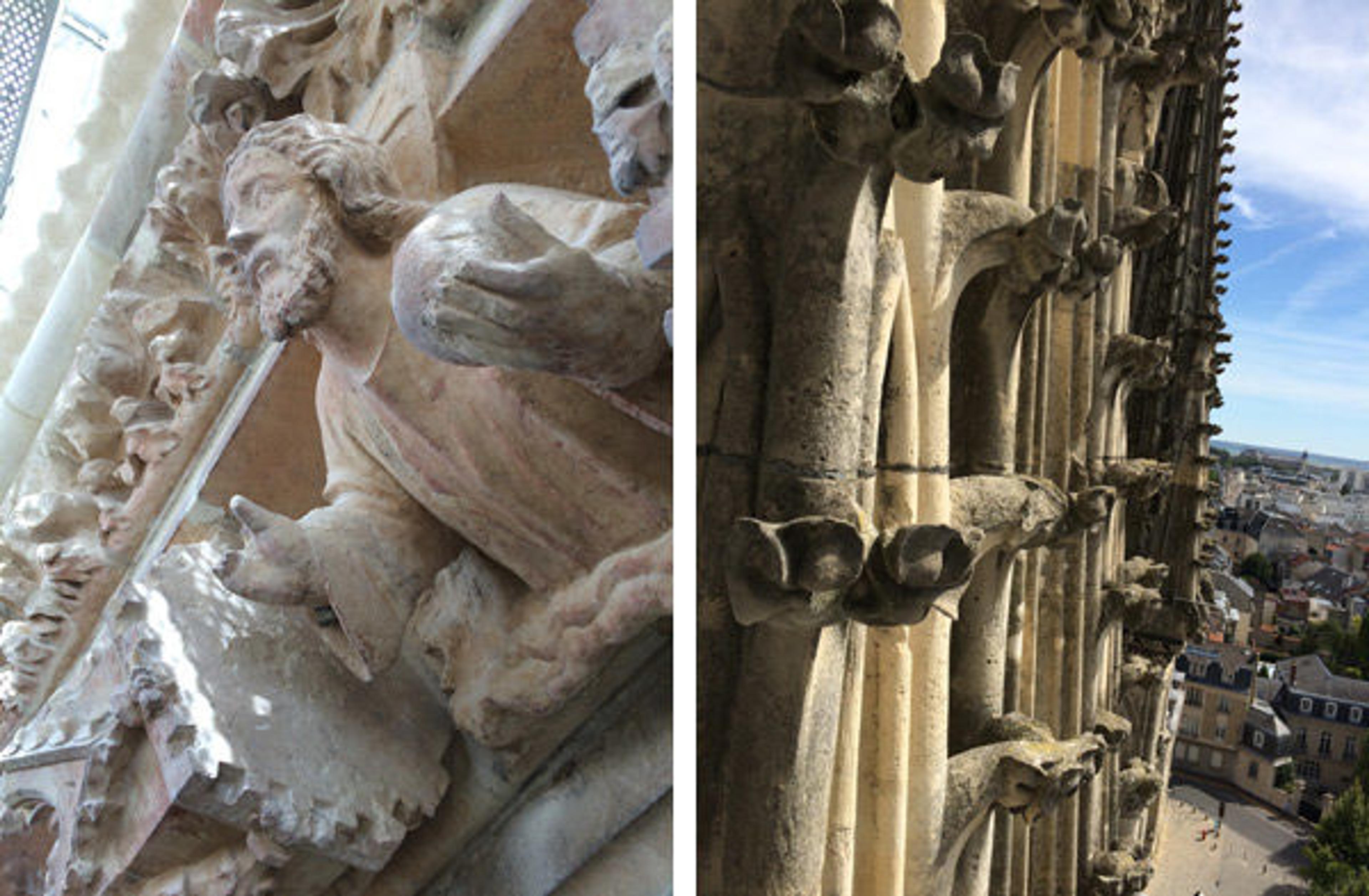 «In recent weeks, my colleagues have shared tales from their summer travels. My trip took me to Paris, where I made excursions to several medieval monuments that are experiencing ongoing restoration work, which provides unusual access to see them up close. (Scaffolds are a good thing!) The most exciting visit was to Notre-Dame de Reims, or Reims Cathedral, in the heart of the Champagne region. Not only is it one of the canonic Gothic cathedrals of the thirteenth century, but it is also the subject of the dissertation that I completed some years ago.»