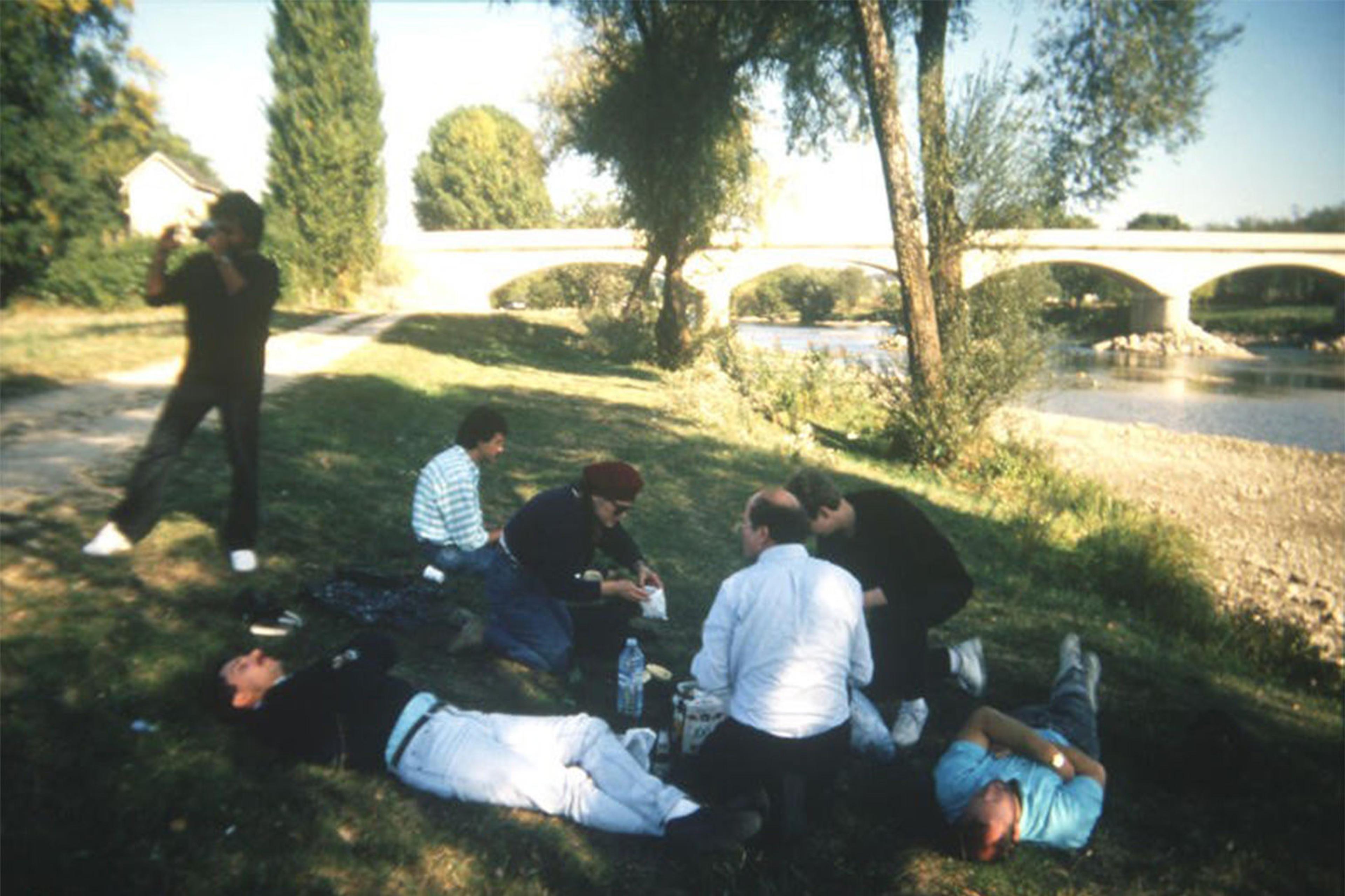 Beauty and the Beast production team members at lunch on the banks of the Loire during their research trip in 1989. Photograph courtesy Hans Bacher