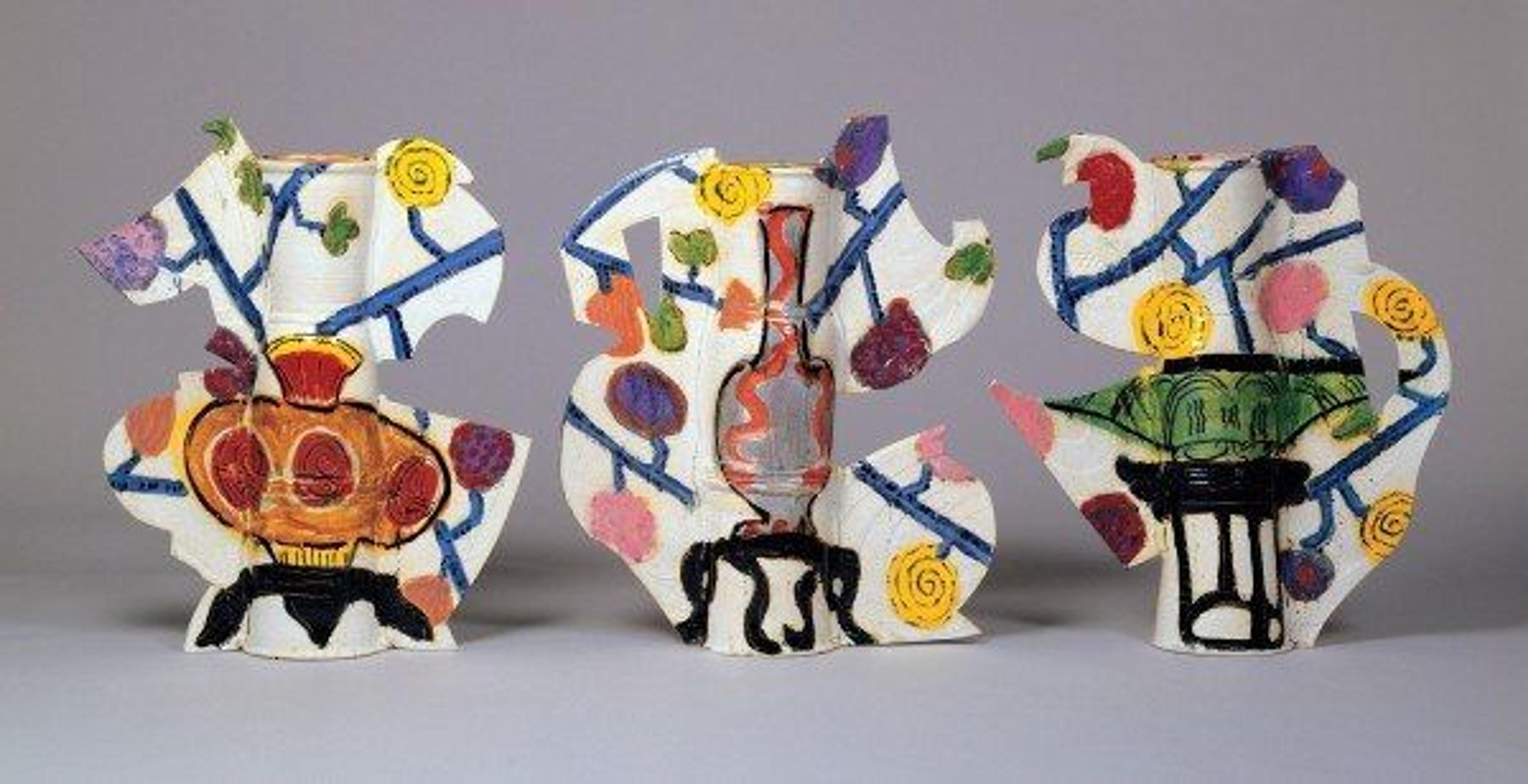 Glazed earthenware, epoxy resin, lacquer and paint; 32 × 81 × 8 in. (81.3 × 205.7 × 20.3 cm). The Metropolitan Museum of Art, Purchase, Gift of The A. L. Levine Family Foundation, by exchange, 2003 (2003.413a–c) © Betty Woodman