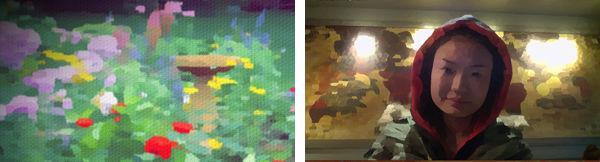 Left: Flowers in Central Park in Monet Mirror. Right: A screenshot from a video of a user using Monet Mirror. Images courtesy of the author