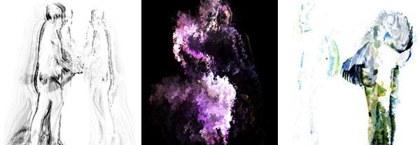 Screenshots of watercolor paintings based on each user's movements that were produced with Flow Brushes. Images courtesy of the author