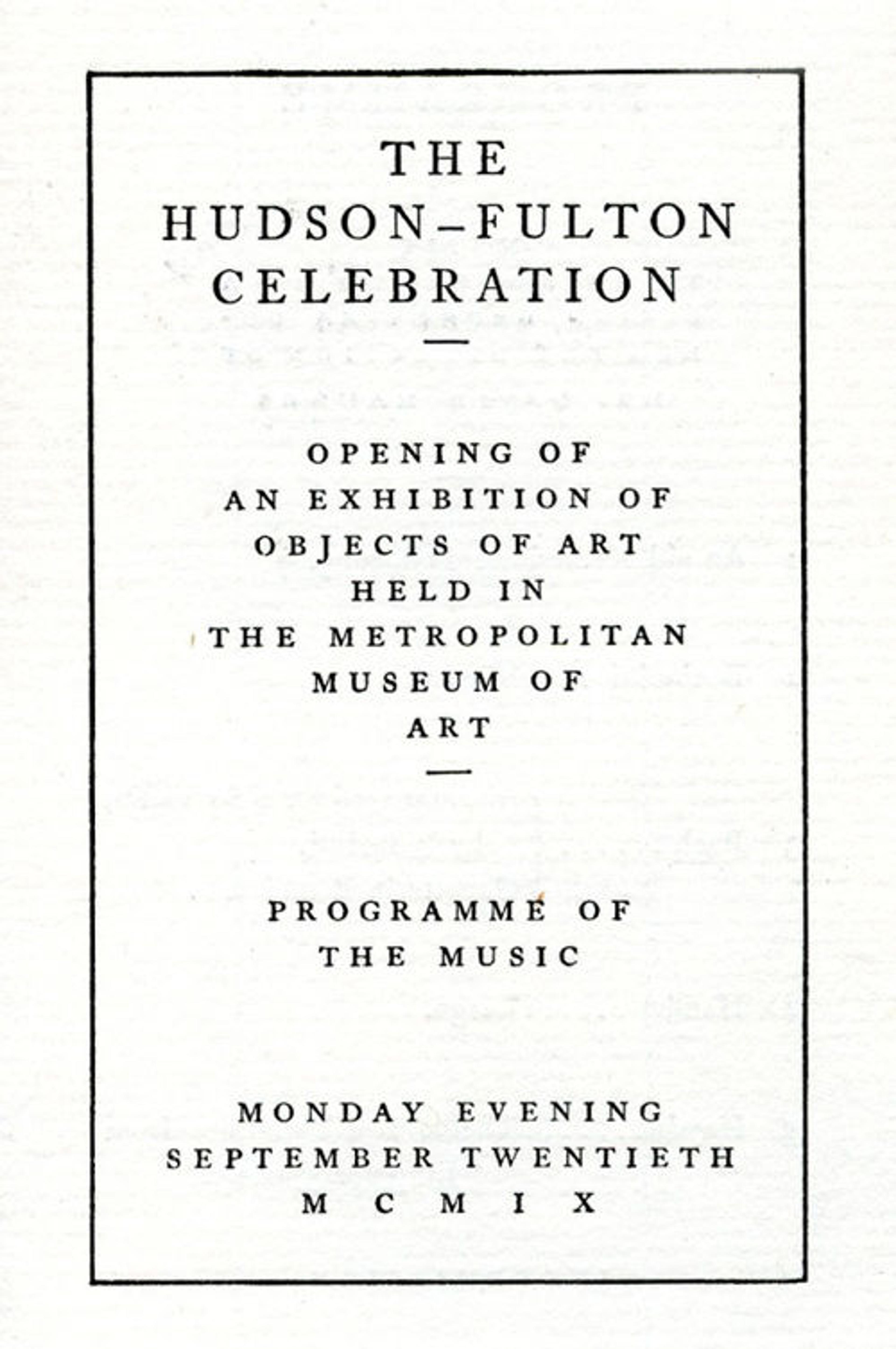 Program for opening of the Hudson-Fulton Celebration exhibition. Office of the Secretary Records, The Metropolitan Museum of Art Archives