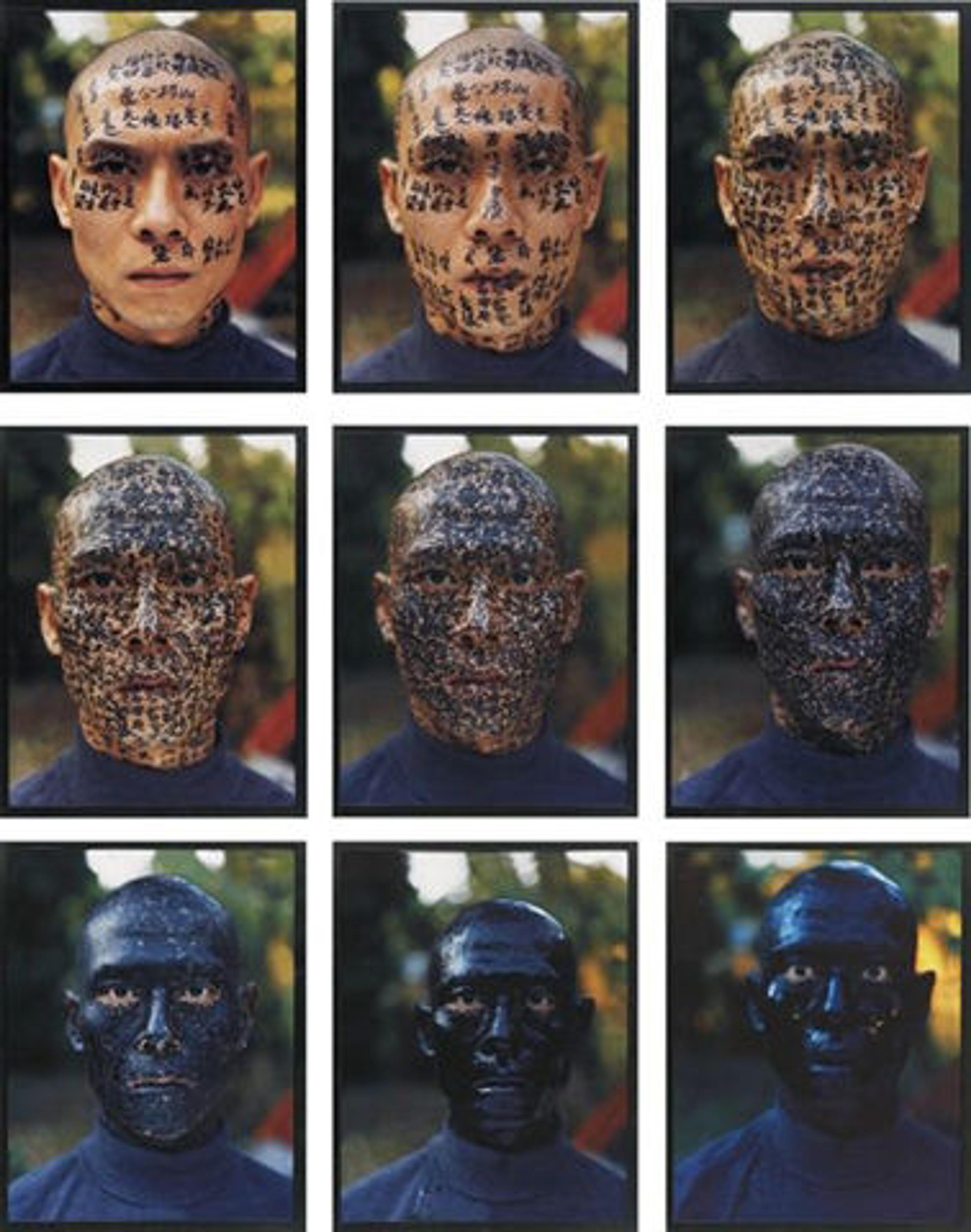 «In Ink Art: Past as Present in Contemporary China, we came across many pieces of artwork that exemplify the contrast between contemporary and traditional art. One of these pieces was Family Tree, a series of nine photographs in which the artist Zhang Huan's face gradually becomes covered in ink and traditional calligraphy.»