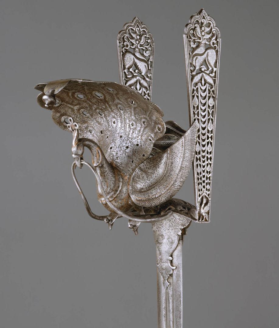 Popular in southern India during the seventeenth and eighteenth centuries, katars were short daggers with handles perpendicular to the blades. Featuring the peacock Paravani, the sacred vehicle of the Hindu god Subrahmanya, this steel dagger celebrates the deity of war. While the hilt was cast and worked in South India, the blade was imported from northern Europe. This dagger, along with over one hundred other objects, was taken from the Thanjavur armory during a British raid in the nineteenth century. The transnational history of this object demonstrates that steel weaponry was crucial to forging connections between South Asia and Europe during the seventeenth and eighteenth centuries.