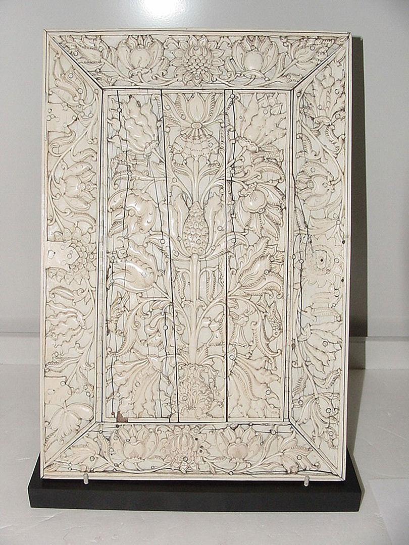Ivory panel from a cabinet with flowers and birds, late 17th century. Attributed to India or Sri Lanka, Coromandel Coast. Ivory veneer over wood, 16 ¼ × 11 in. (41 × 27.9 cm). The Metropolitan Museum of Art, New York, Purchase, Cynthia Hazen Polsky and Leon B. Polsky Fund, 2006 (2006.259)