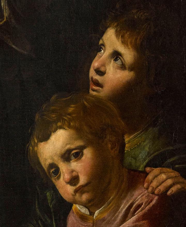 Two children wonder why their mother has been dragged before a judge; one turns to ask us why. Valentin de Boulogne (French, 1591–1632). The Judgement of Daniel, or The Innocence of Susanna (detail), 1625. Oil on canvas; 68 7/8 x 83 in. Musée du Louvre, Paris (Inv. 8245)