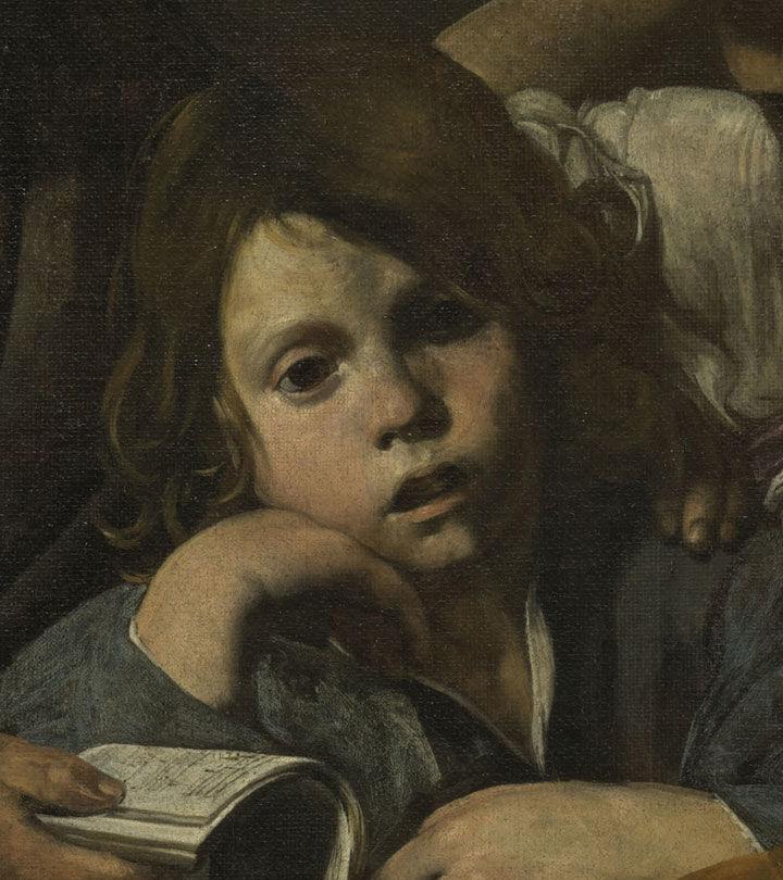 A child, lost in thought, while the rest of the adult company plays on. Valentin de Boulogne (French, 1591–1632). Concert with a Bas-Relief (detail), 1622–25. Oil on canvas; 68 1/8 x 84 1/4 in. Musée du Louvre, Paris (Inv. 8253)