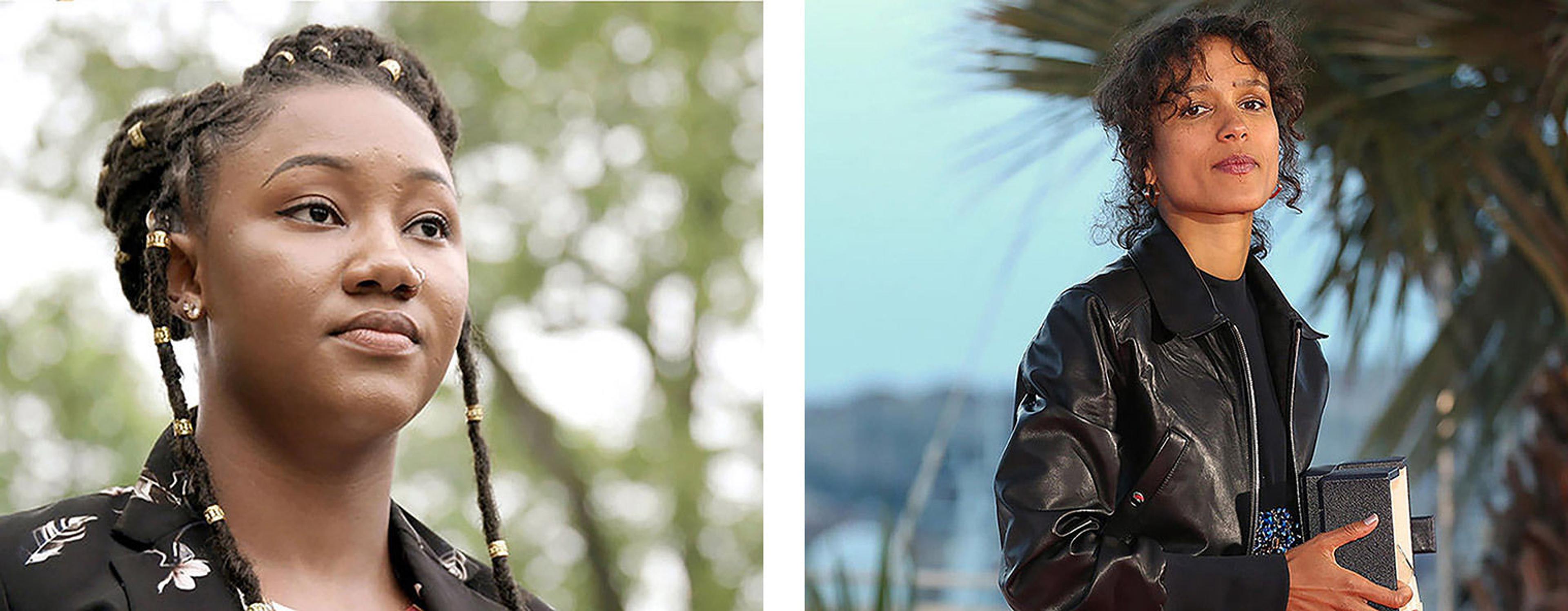 Left: Fatou "Toufah" Jallow started a #MeToo movement and a foundation to support survivors of sexual assault in Gambia. Photo courtesy Human Rights Watch. Right: Filmmaker Mati Diop directed the Cannes Award–winning film Atlantics.
