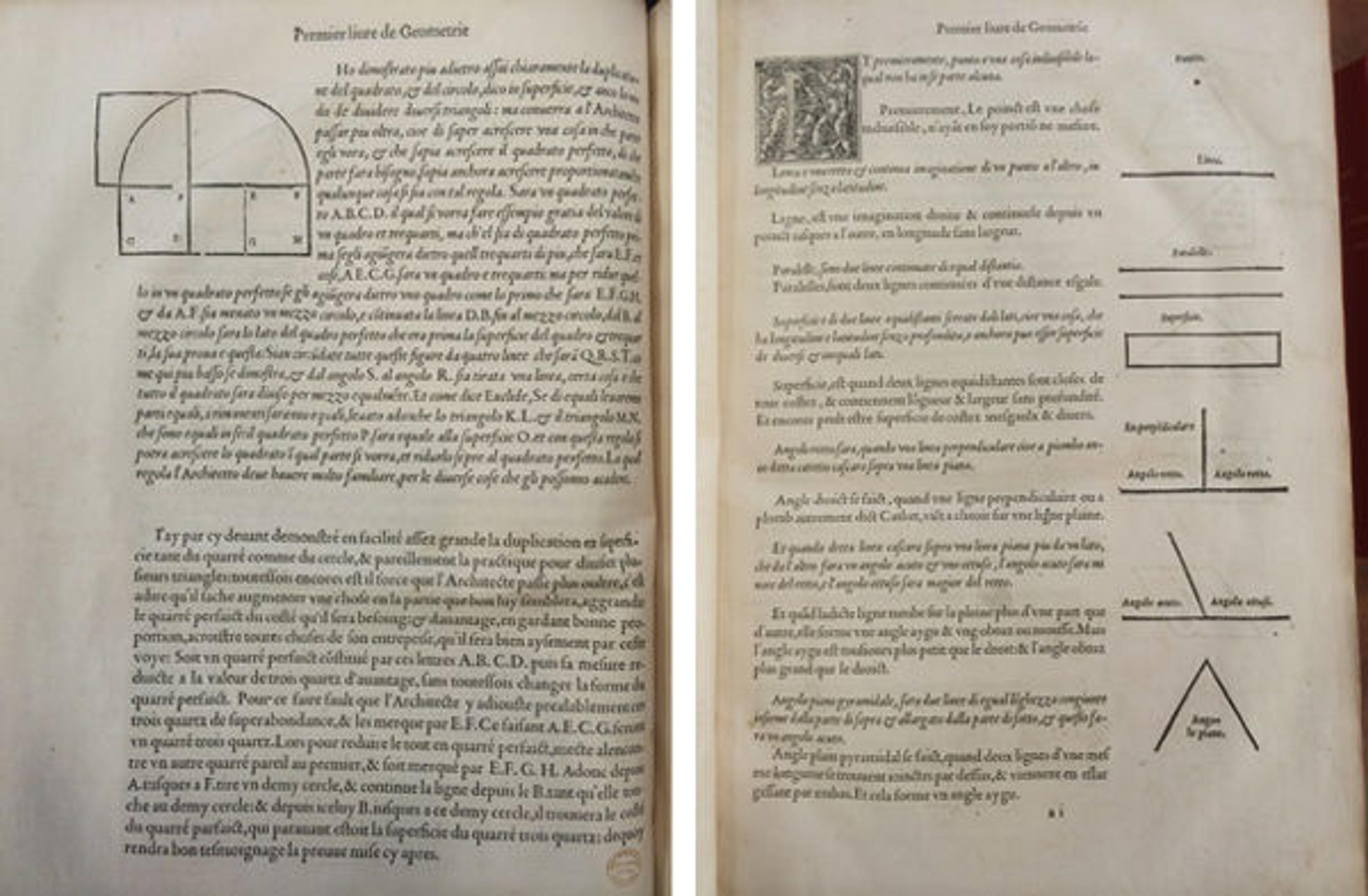 Sebastiano Serlio (Italian, 1475–1554). Two pages from Il primo libro d'architettura, 1545. Printed book with woodblock illustrations. The Metropolitan Museum of Art, New York, Harris Brisbane Dick Fund, 1937 (37.56.2(1-2))