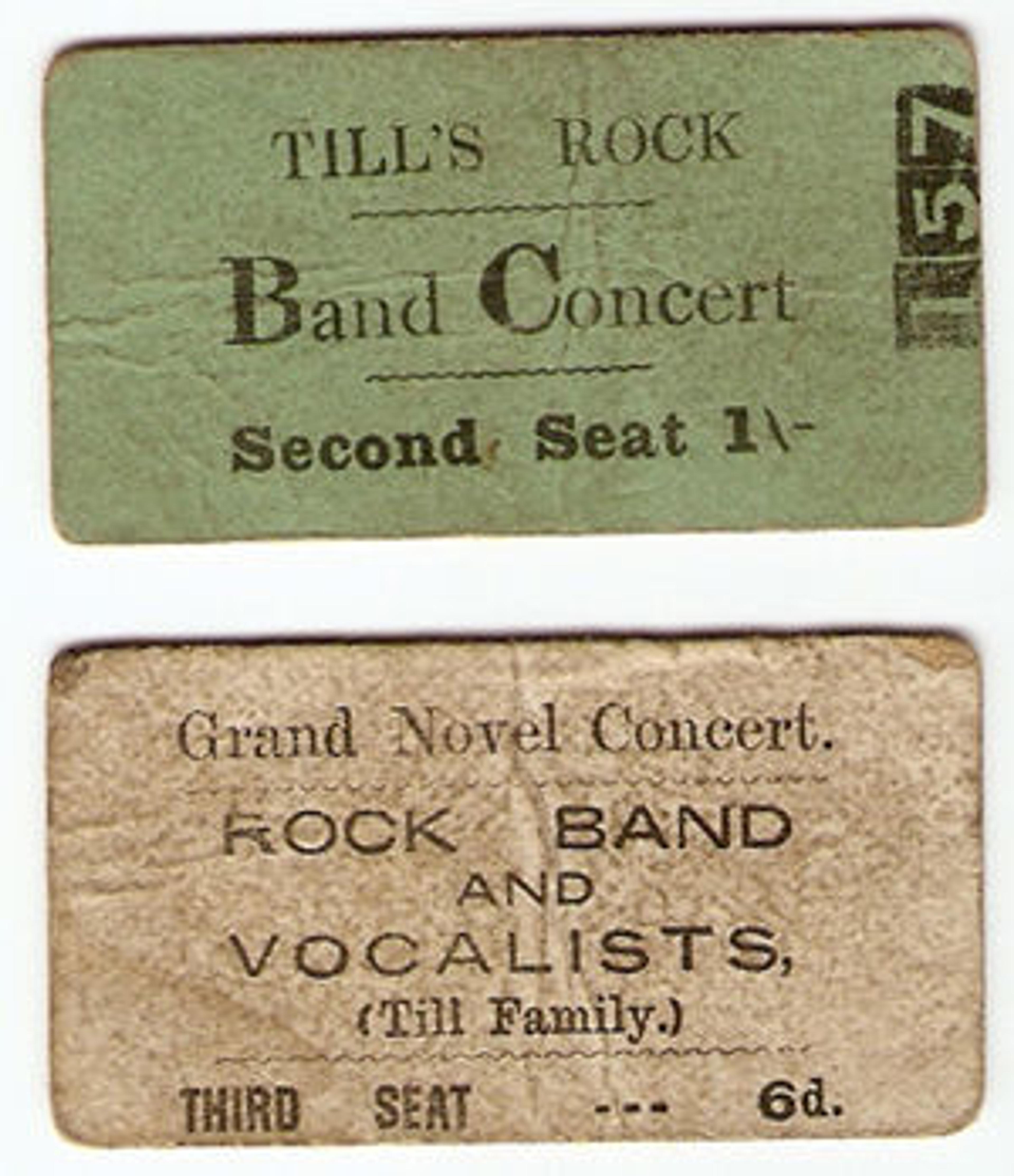 Left: Till Family Rock Band concert tickets. Photo courtesy of a private collection
