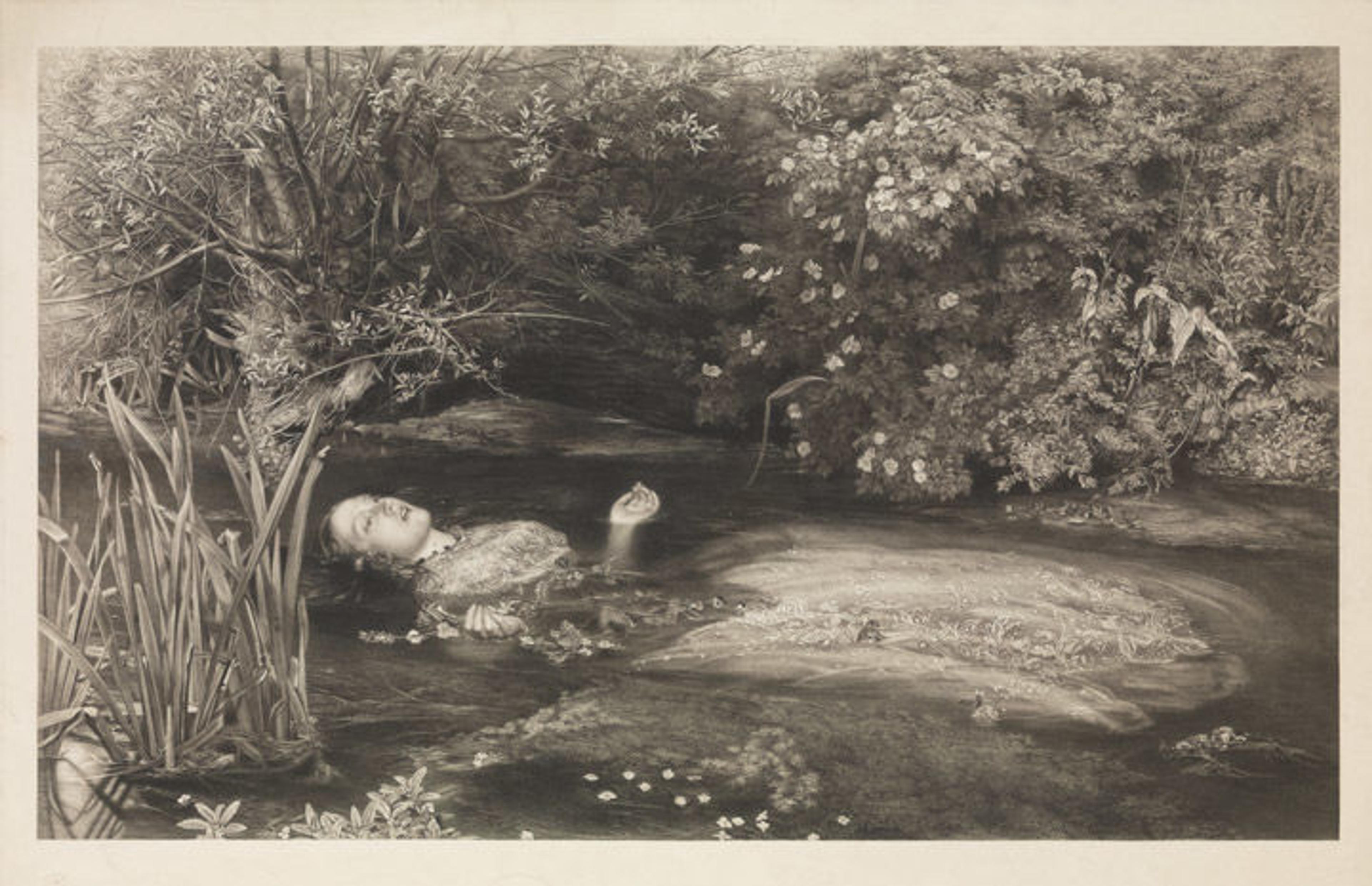 Fig. 4. James Stephenson (British, 1808–1886) after John Everett Millais (British, 1829–1896). Ophelia (Hamlet, Act 4, Scene 7), 1866. Mezzotint, etching and stipple on chine collé; proof; Image: 20 11/16 in. x 34 in. (52.5 x 86.3 cm). The Metropolitan Museum of Art, New York, The Elisha Whittelsey Collection, The Elisha Whittelsey Fund, 1949 (49.40.282)