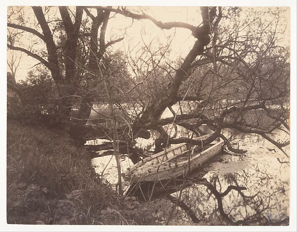With the financial security that came from the sale of the majority of his negatives of old Paris to the French government in fall 1920, Atget felt able to photograph for his own pleasure. Free from the concerns of commercial utility, he made many of his most beautiful and original photographs in the final years of his life. This spot was a favorite of the landscape painter Camille Corot–the pond was, in fact, often called "Corot's pond." Atget caught the simple rowboat in the embrace of tree branches and their reflection.