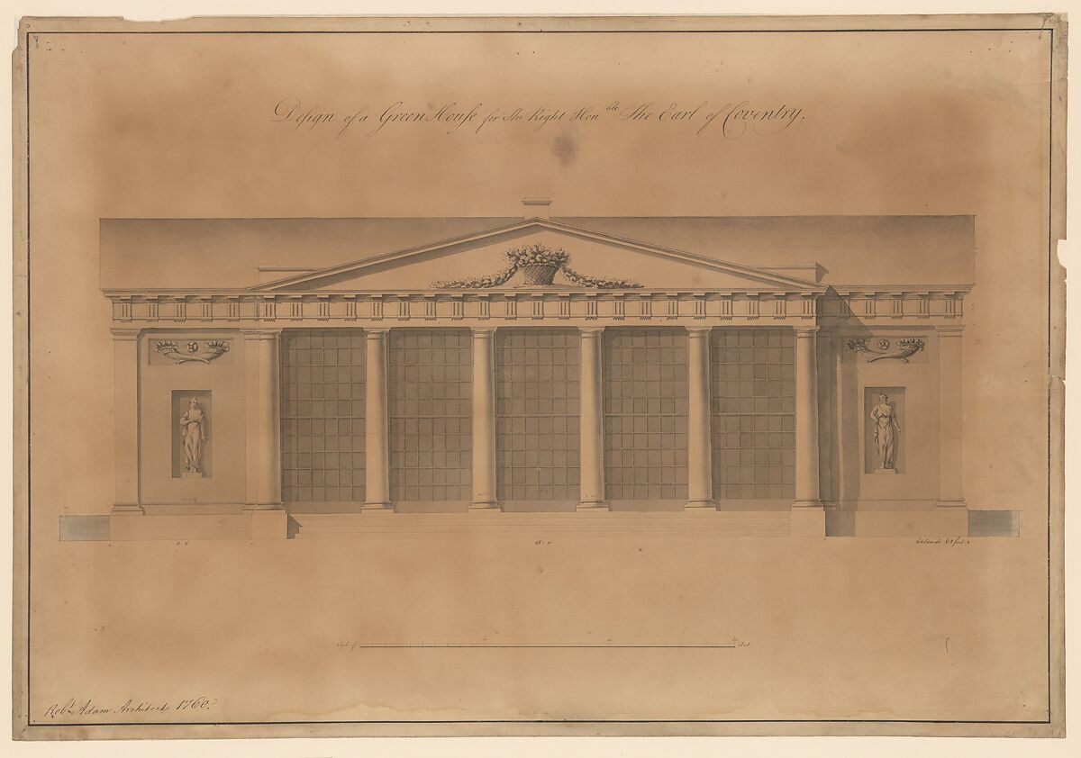 - Title: Design of a Greenhouse for the Right Honorable Earl of Coventry, Croome Court, Worcestershire (Elevation)