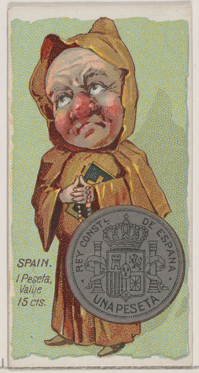 - Title: Caricatured Spaniard, 1 Peseta, from the series Coins of All Nations (N72, variation 2) for Duke brand cigarettes