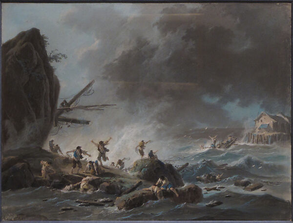 This work of art is currently on loan to the museum.The artist made many sketches of bucolic subjects that he used when preparing imaginary views, whether in oil, gouache, or pastel, which may have been his favorite medium. All his views are animated by colorful, closely observed figures. He became increasingly interested in nature in the late 1750s, when, having settled in England, he sensed the prevailing taste there for landscape, rather than history, painting. In Lisbon in the 1780s he developed a fascination with maritime subjects, ports, and shipwrecks, often painted in pairs. Pillement’s shipwrecks are graphic and dramatic, a form of reportage that even if generalized may have provoked a frisson in an eighteenth-century observer.