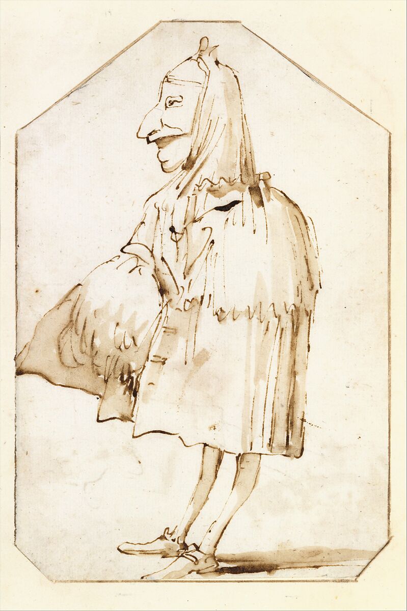 - Title: Caricature of a Man in a Mask and a Cloak, Holding a Muff and a Tricorne, Standing in Profile to the Left