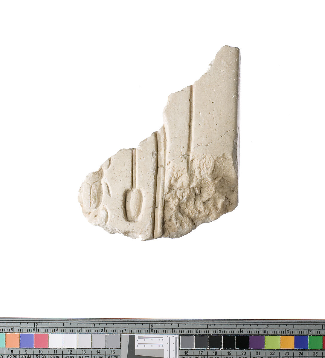 - Title: Inscribed corner, Akhenaten prenomen on one surface, Aten cartouche on other