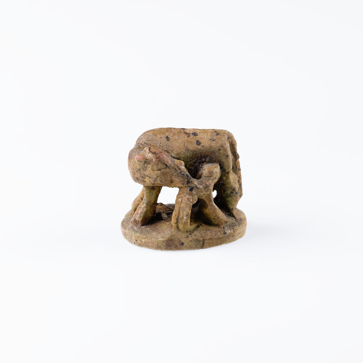 - Title: Design amulet, Cow and Calf on the Back, Device showing Antithetical Falcons Flanking an Ankh Sign over a Crouching Lion