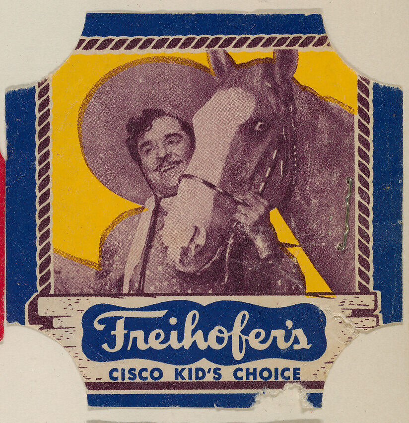 Cisco Kid (blue border set), from the Bread End Labels series (D290-4) issued by Freihofer Baking Company. (Album 307, page 132)