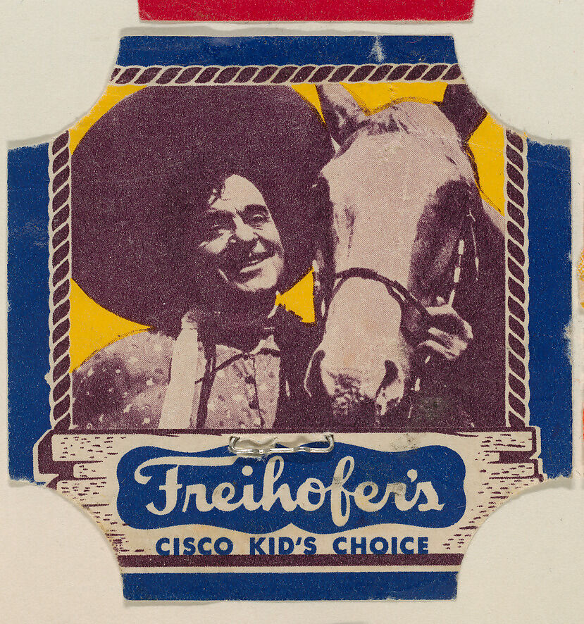 Cisco Kid (blue border set), from the Bread End Labels series (D290-4) issued by Freihofer Baking Company. (Album 307, page 132)