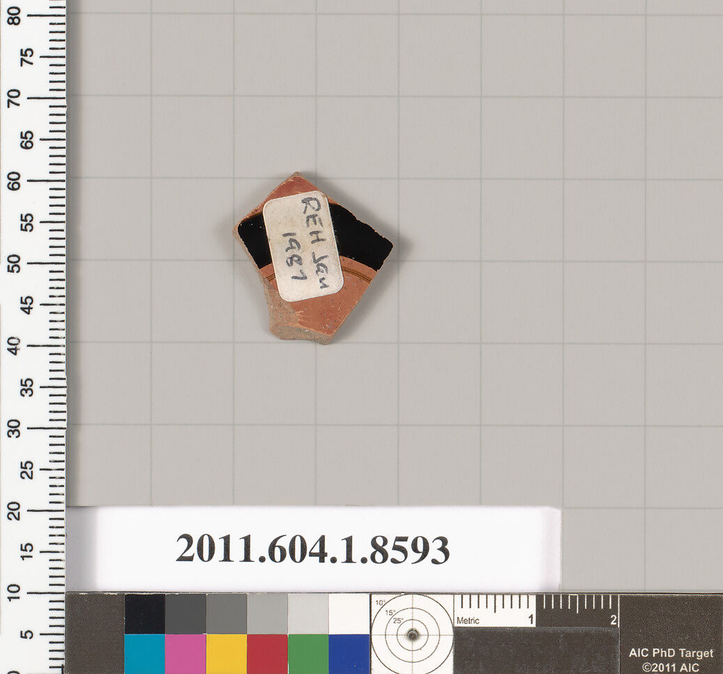 - Title: Terracotta fragment of a stemless kylix (drinking cup)