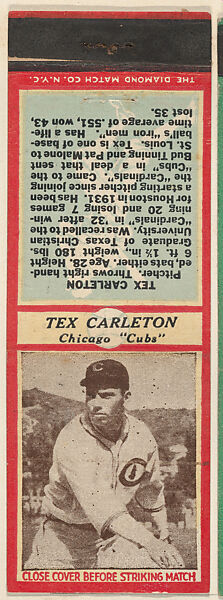 - Title: Tex Carleton, Chicago Cubs, from the Baseball Players Match Cover design series (U3) issued by Diamond Match Company