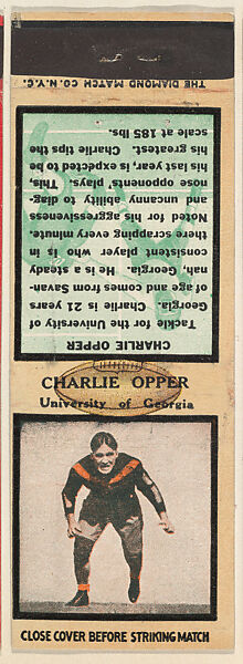 - Title: Charles Opper, University of Georgia, from the Football Players Match Cover design series (U6) issued by Diamond Match Company