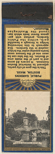 - Title: Public Gardens, Boston from New England, Souvenir Views Match Cover series (U40.7)