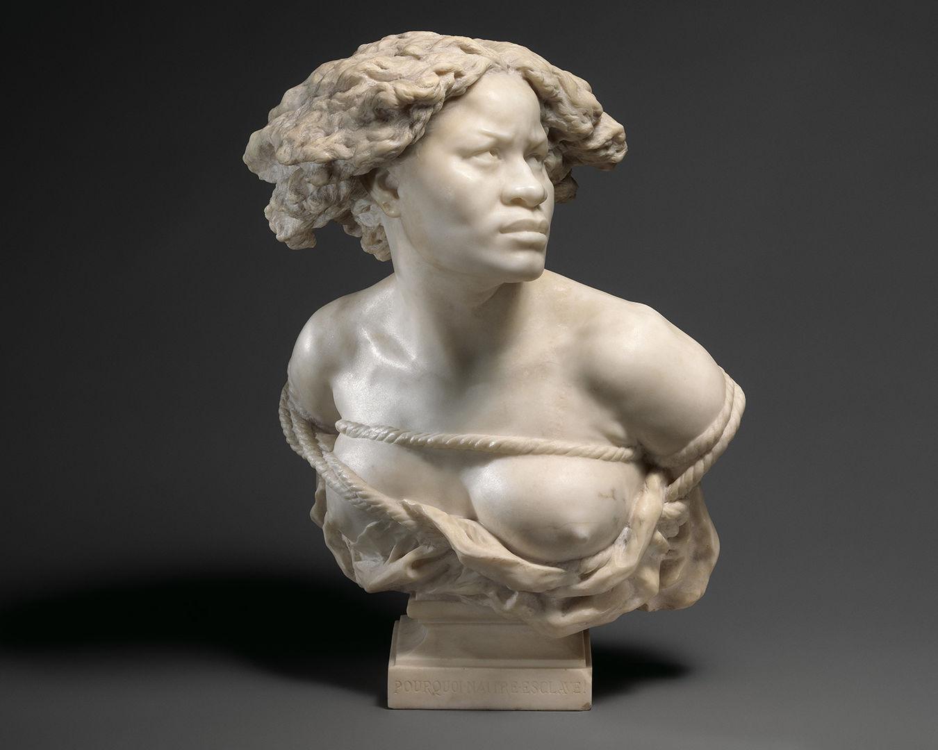 Jean-Baptiste Carpeaux (French, 1827–1875). Why Born Enslaved!, modeled 1868, carved 1873. Marble, 22 7/8 x 16 x 12 1/2 in., 132.7 lb. (58.1 x 40.6 x 31.8 cm, 60.2 kg), pedestal: 22 x 18 in., 1298 lb. (55.9 x 45.7 cm, 588.8 kg). The Metropolitan Museum of Art, Purchase, Lila Acheson Wallace, Wrightsman Fellows, and Iris and B. Gerald Cantor Foundation Gifts, 2019 (2019.220)