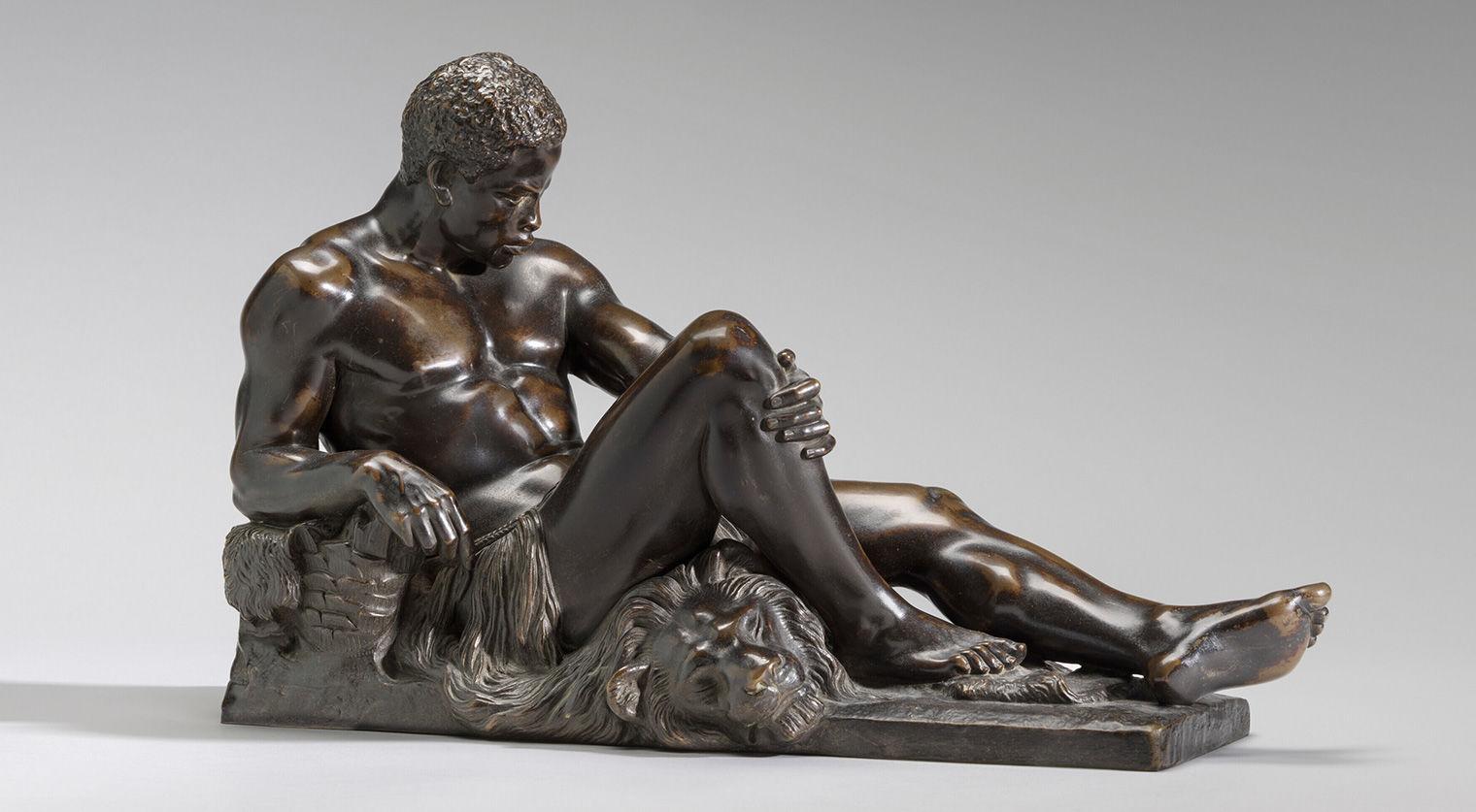NARRATOR: Imagine a bronze figure of a muscular African man reclining atop the skin of a lion—one of the many symbols Europeans associated with the continent. The sculpture, called Allegory of Africa by Frédéric-Auguste Bartholdi, dates to around 1863.